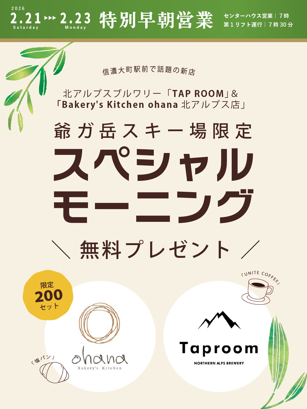 2026年2月21日(土)から23日(月・祝)までの3日間、早朝特別営業を実施いたします。