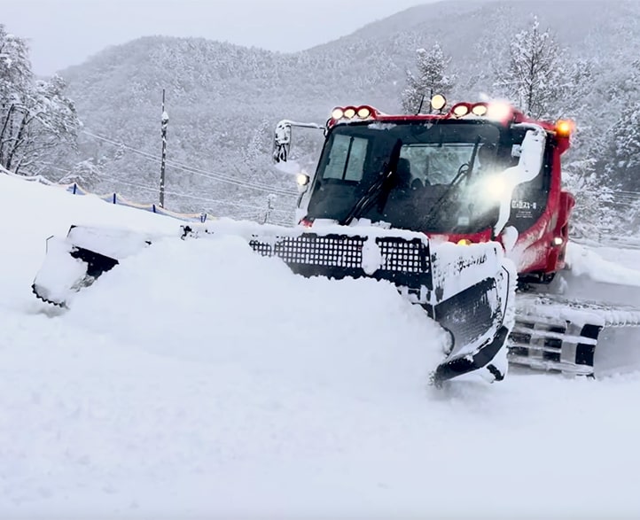 冬のゲレンデを支える、はたらくくるま「雪上車」。大きな車体や力強く動くキャタピラは、多くのお子さまにとってワクワクする存在です。爺ガ岳スキー場では、この雪上車の助手席に乗車できる体験をご用意しています。いつも滑っているゲレンデを、少し高い視点から眺められる貴重な機会として、ぜひお楽しみください。